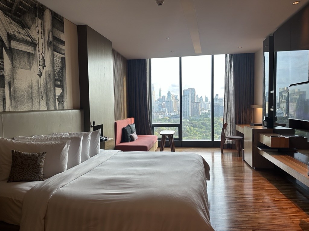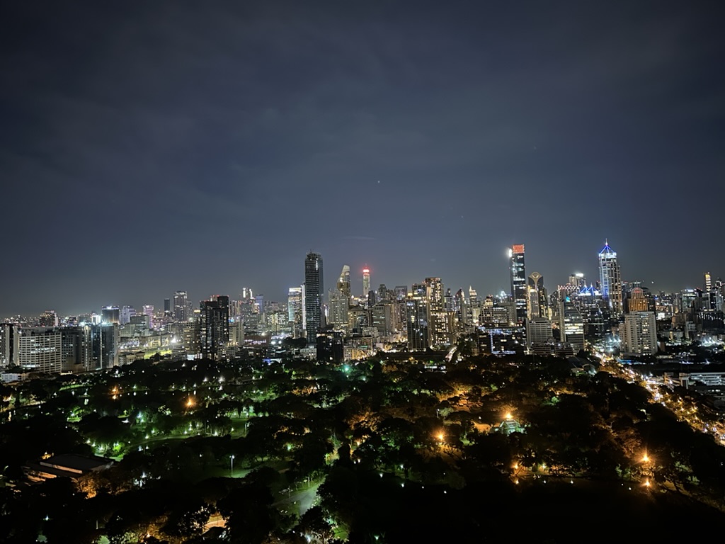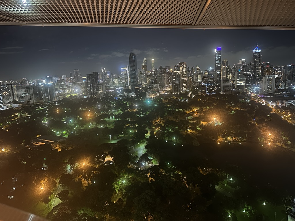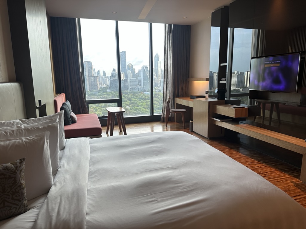 目の前のルンピニ公園とビル群のコントラストは、どこから見ても圧巻でお部屋でもずっと見ていられるのが嬉しい!