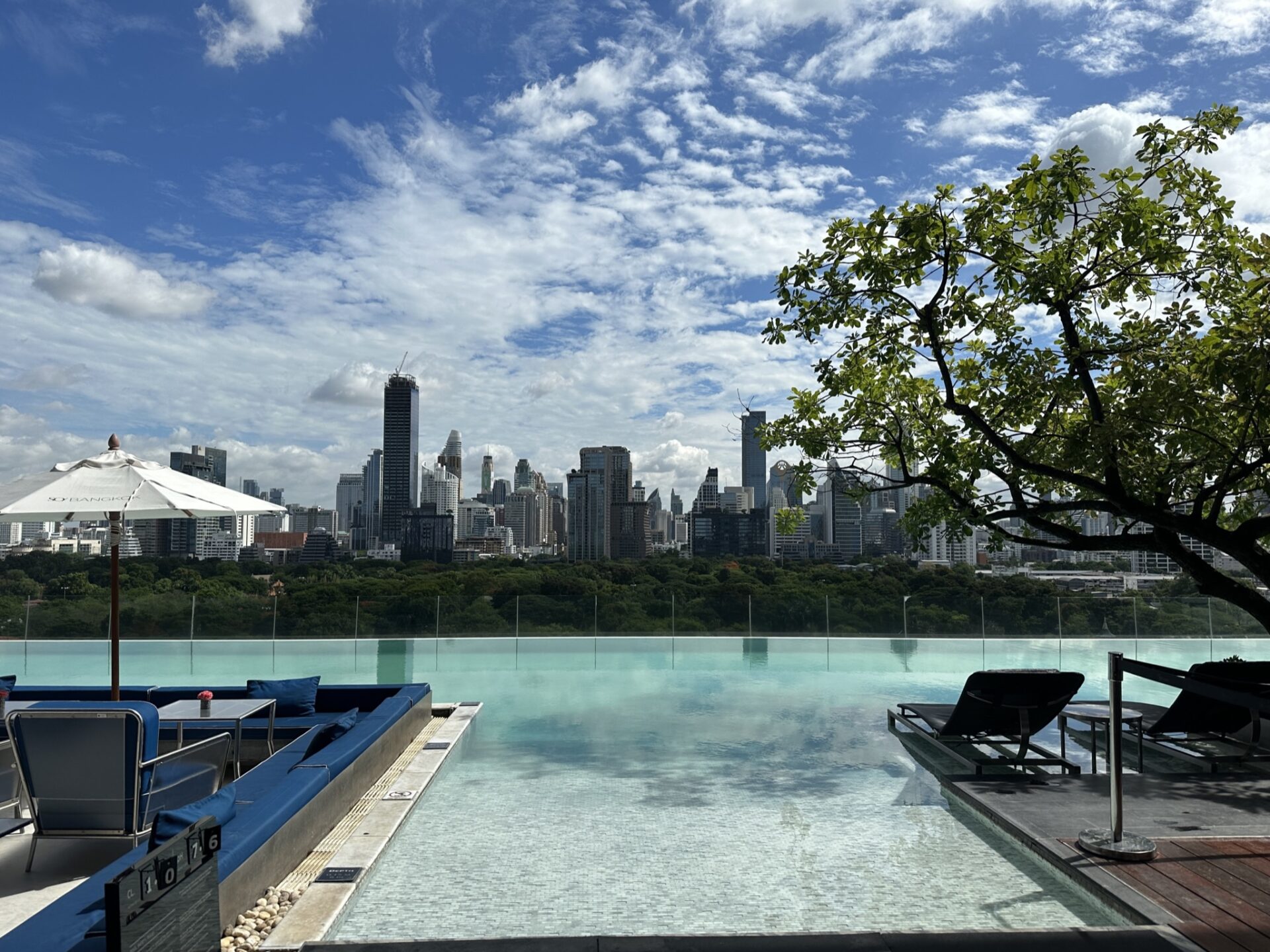 ルンピニ公園と囲むように立ち並ぶビル群を見ながら、プールに入るのは最高に気持ちいい!