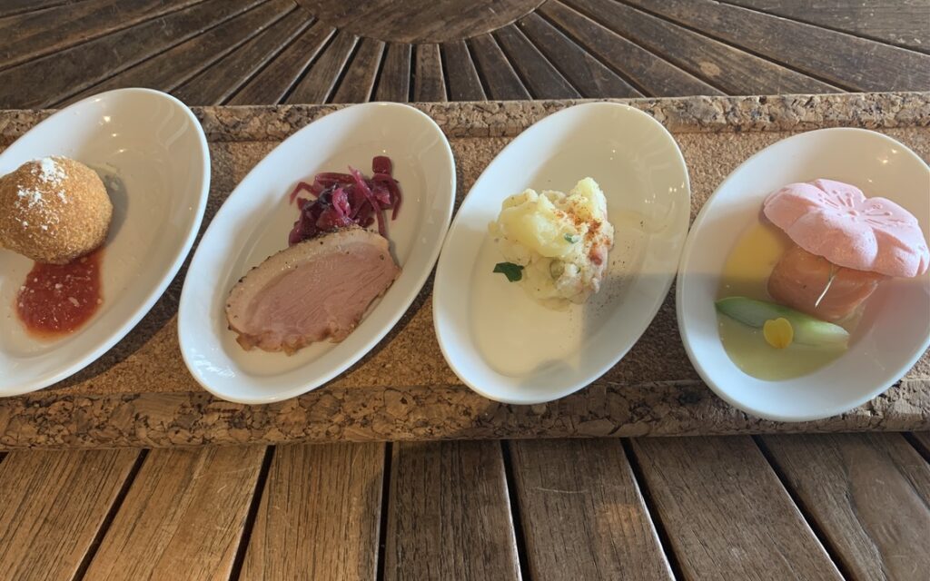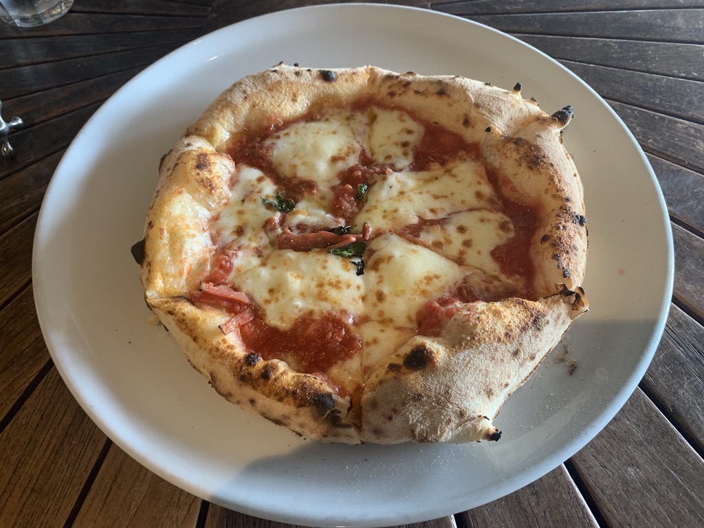 お食事は、イタリアンで、前菜と熱々のピザをいただきました♫生地がモッチモチで美味しかったです!