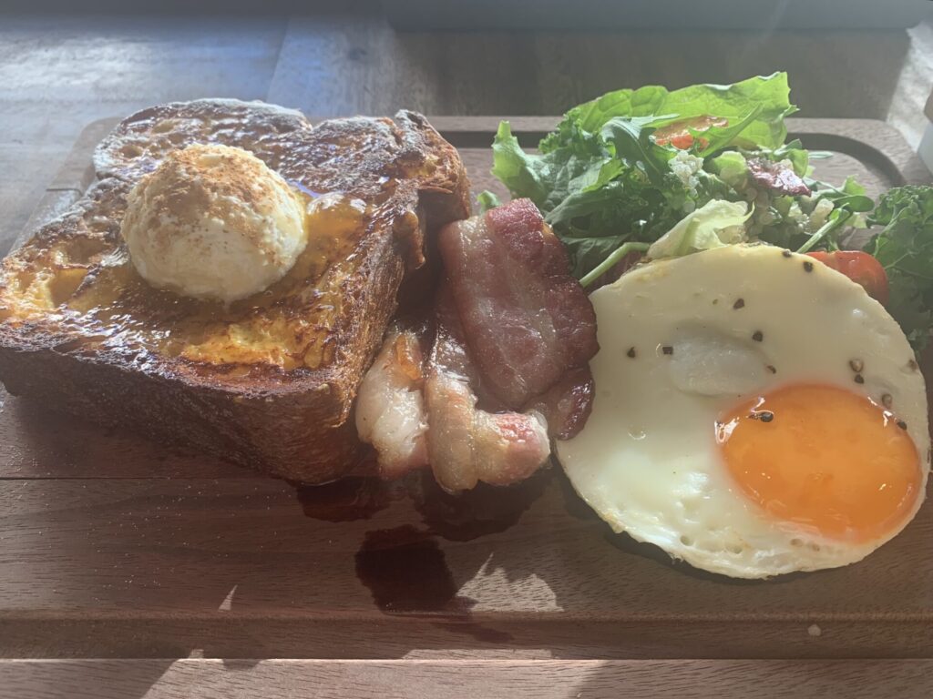 フレンチトーストは表面はカリッとしてますが、中はふわふわで、ホイップバター、メープルシロップと食べるとたまらなく美味しい✨