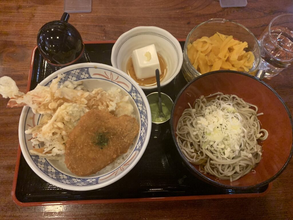 ランチは、へぎそばとタレカツ、天ぷらがセットになってる「ミックス天丼へぎそば定食」がボリューム満点で、お勧め🤗