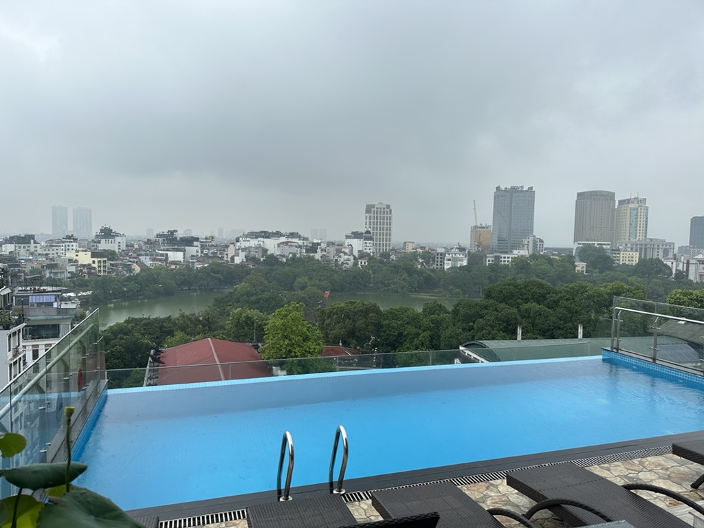 最上階にプールがあって、ホアンキエム湖を望みながら、入ることができます。