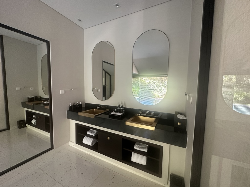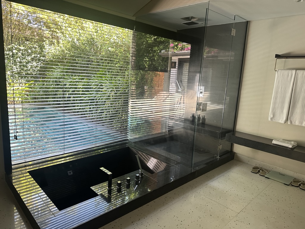 バスルームは、ガラス張りのシャワールームと大きなバスタブから、プールが見れて、明るくとても開放的でした。