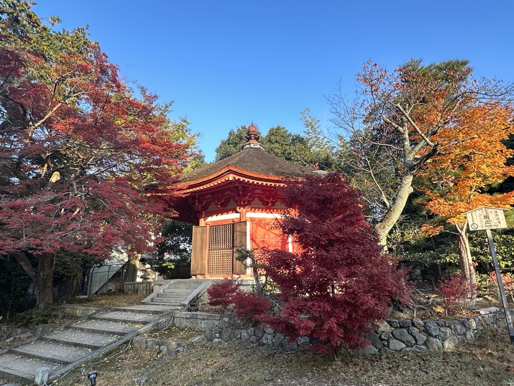 紅葉に囲まれた可愛いらしい御堂は、室町時代前期の建物で、愛染明王が祀られているそうです。